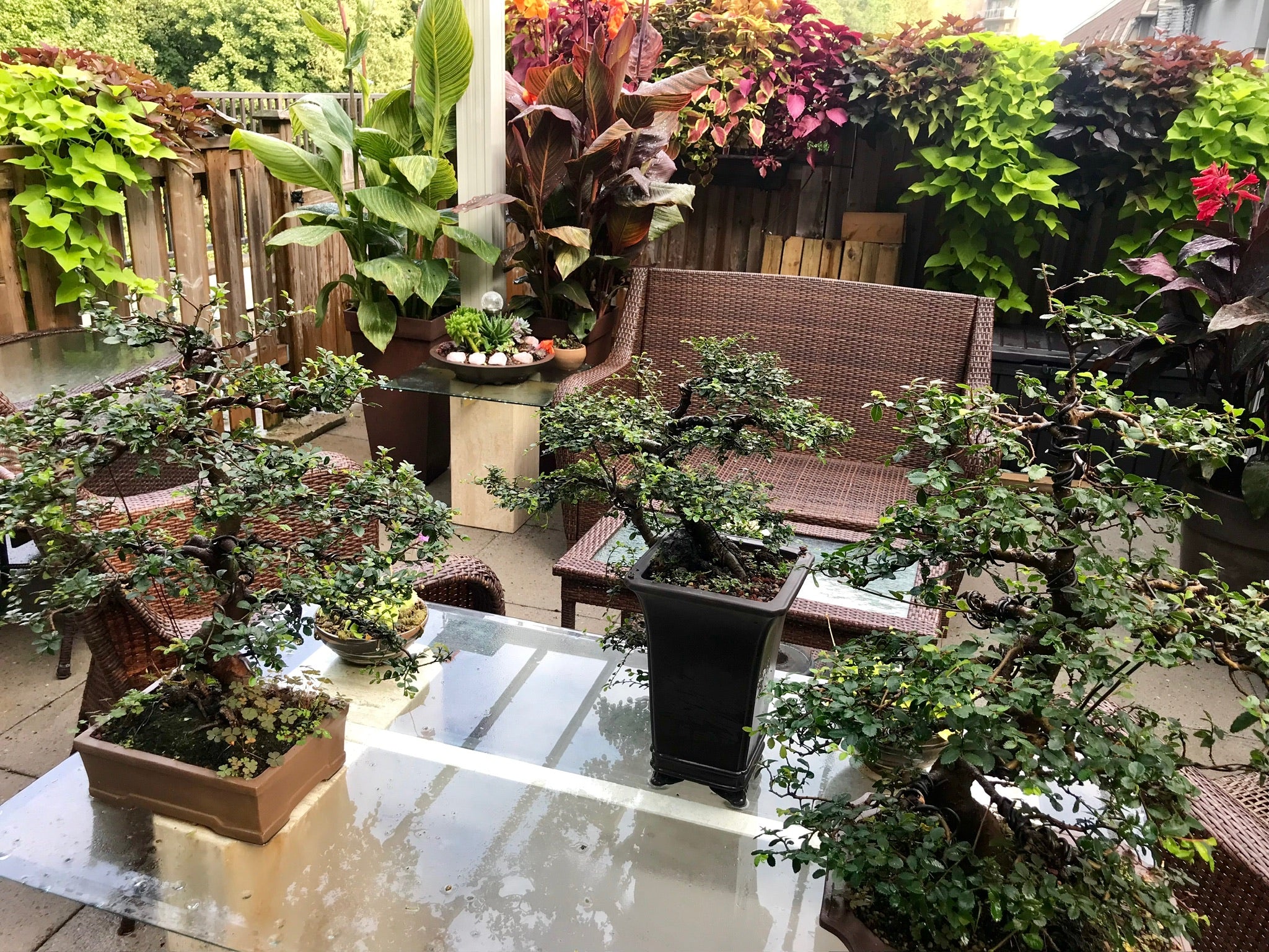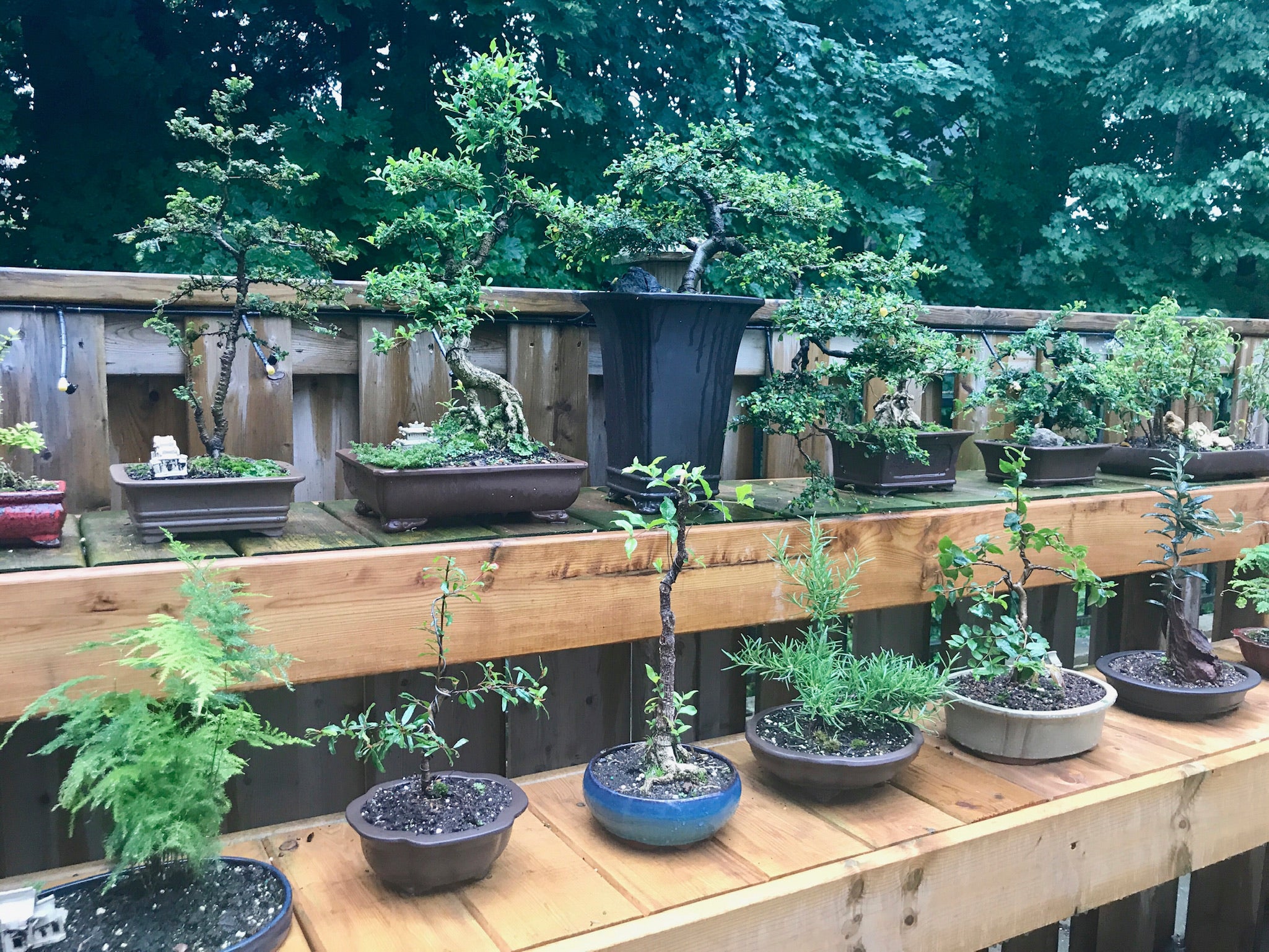 dark greens - Acer, Azaleas, Chinese elm, cotoneaster