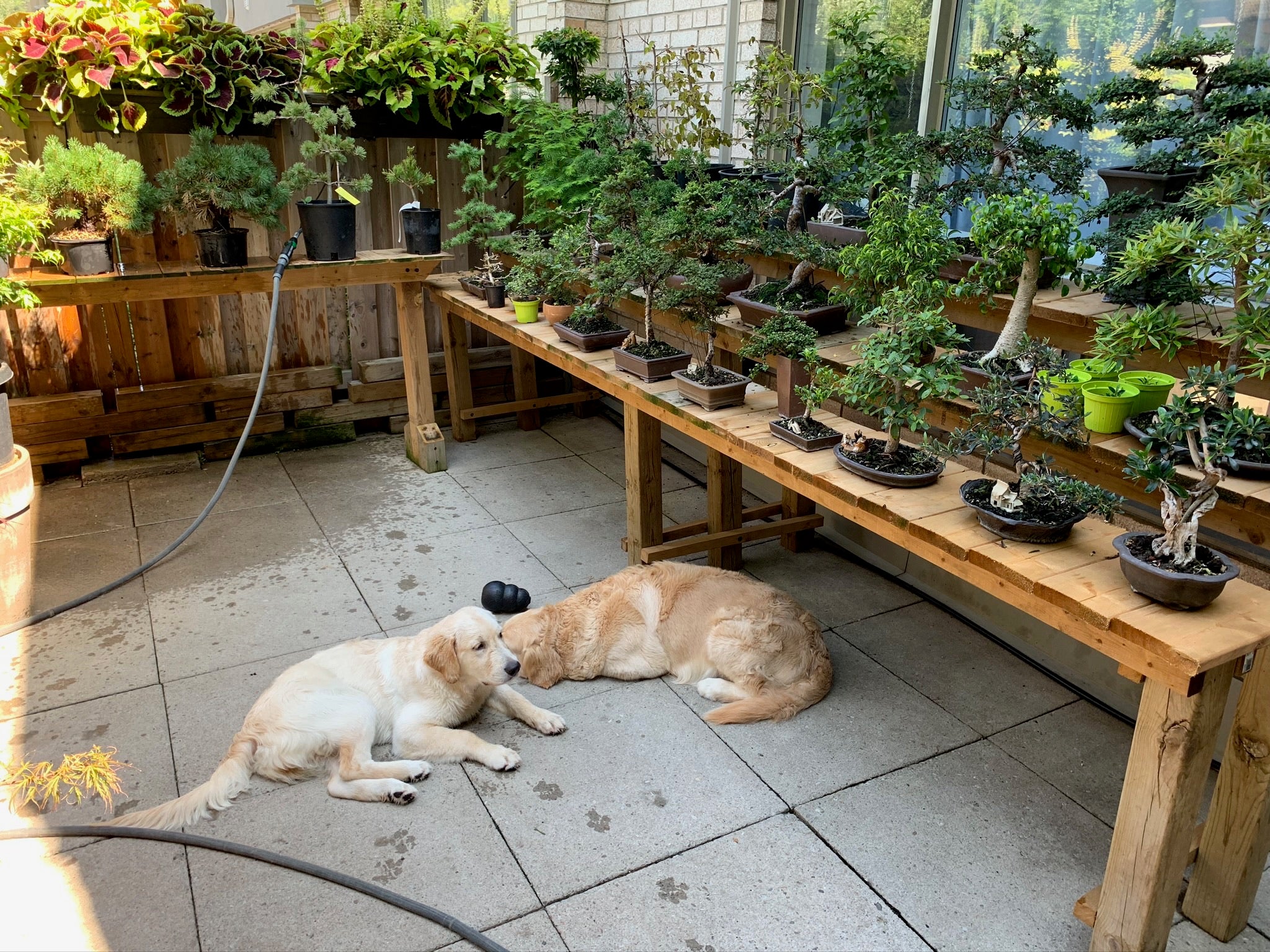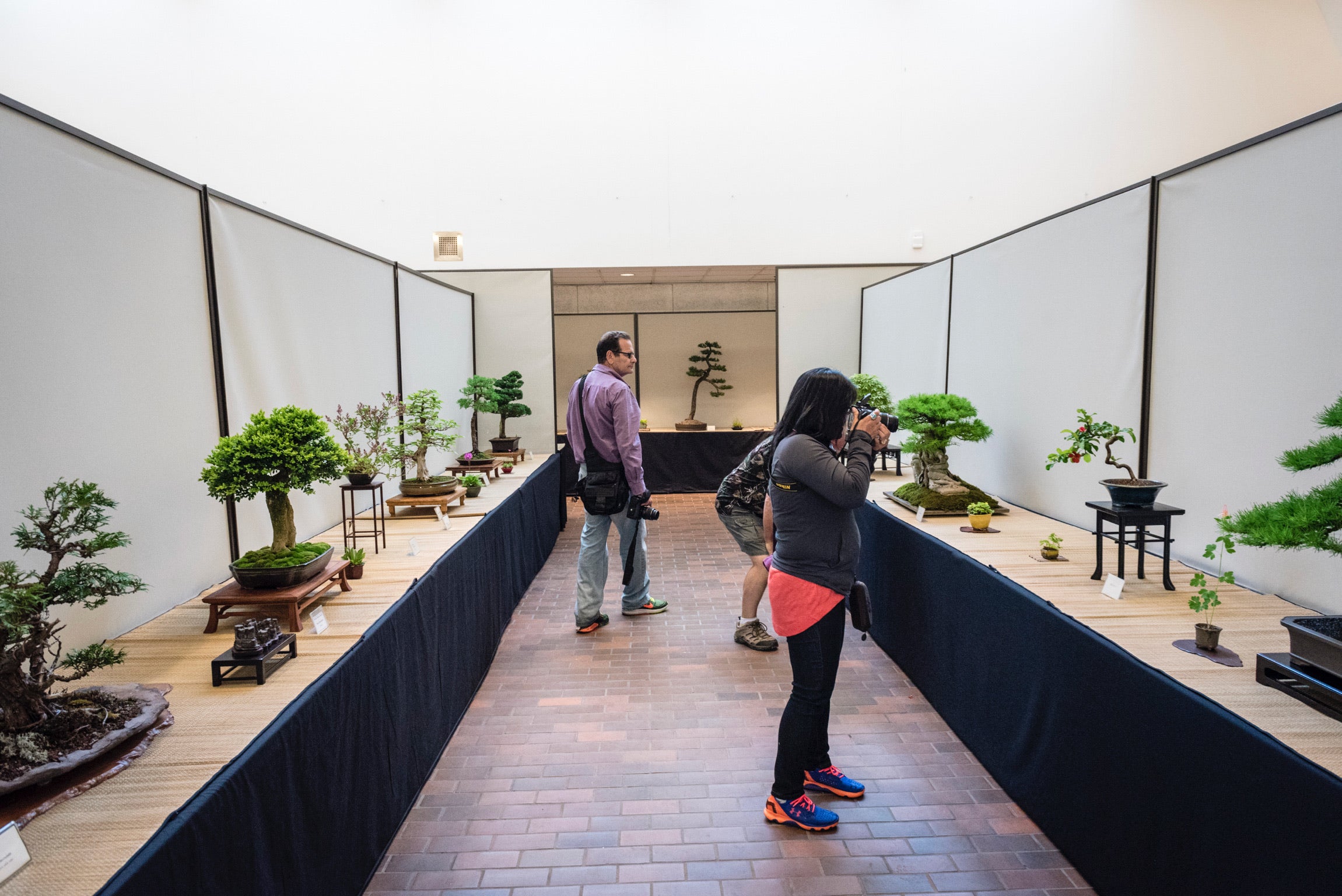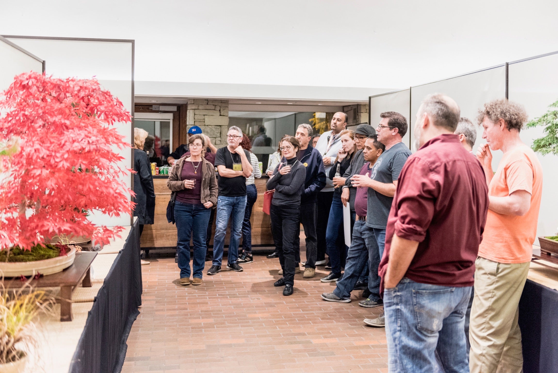 Warm and cold colours can be used to contrast with a bonsai. Warm colours can be used for tiny (mame-sized) bonsai to exaggerate their colour whereas cool colours can be used to tone down bright-leaved species.