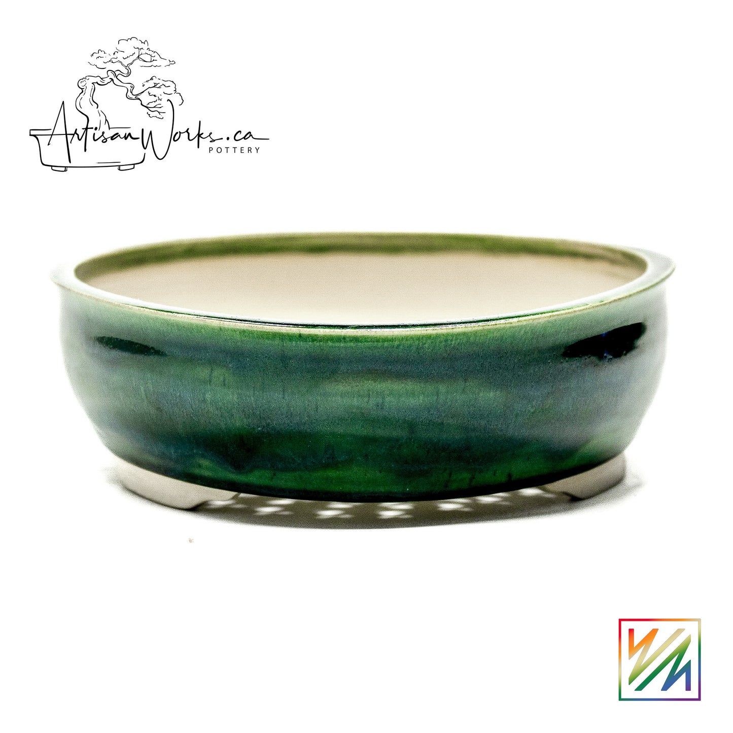 Made on a pottery wheel is a classic and traditional method of pottery-making transforming clay into this pots. When making a bonsai pot on a pottery wheel, I center a ball of clay on the wheel, uses my hands as my tools to shape the clay into the desired form, and adds details such as rims, feet, and surface textures to enhance the design.