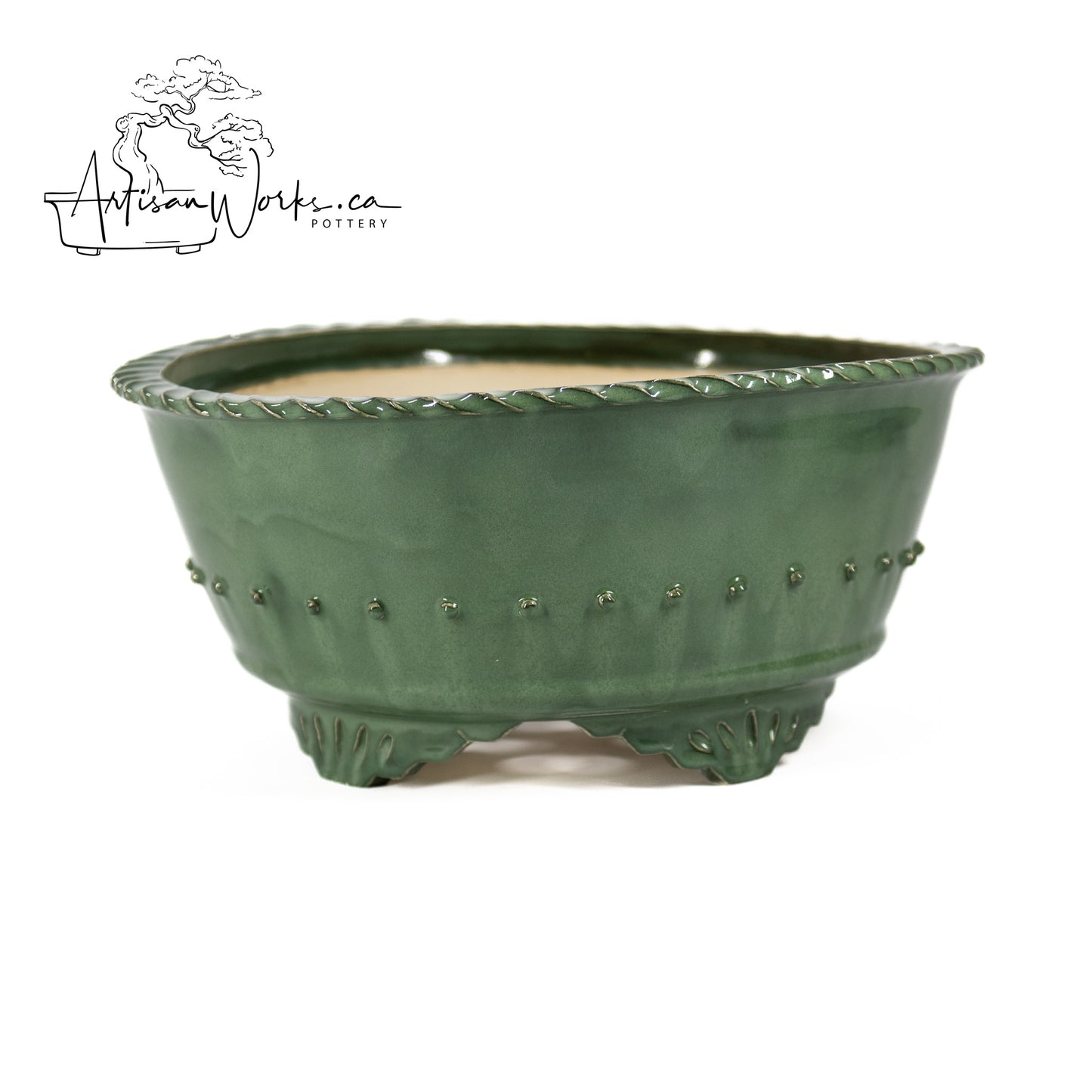 Made on a pottery wheel is a classic and traditional method of pottery-making transforming clay into this pots. When making a bonsai pot on a pottery wheel, I center a ball of clay on the wheel, uses my hands as my tools to shape the clay into the desired form, and adds details such as rims, feet, and surface textures to enhance the design.